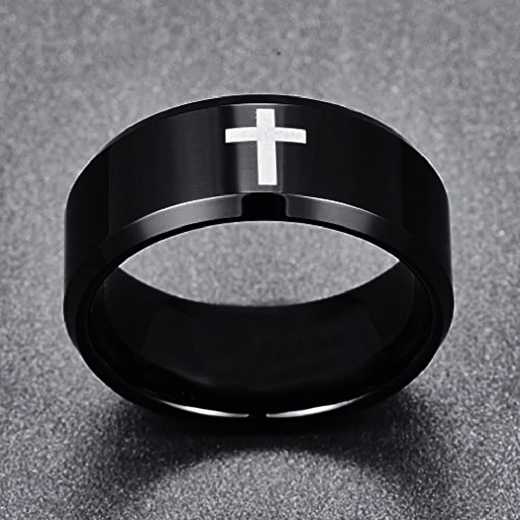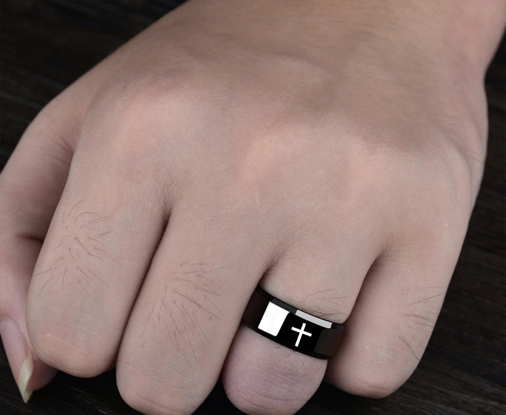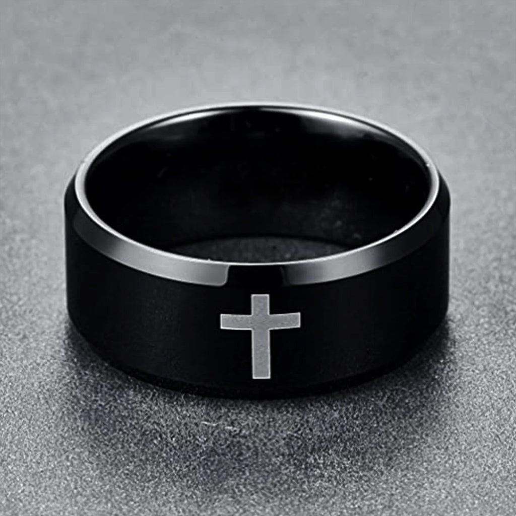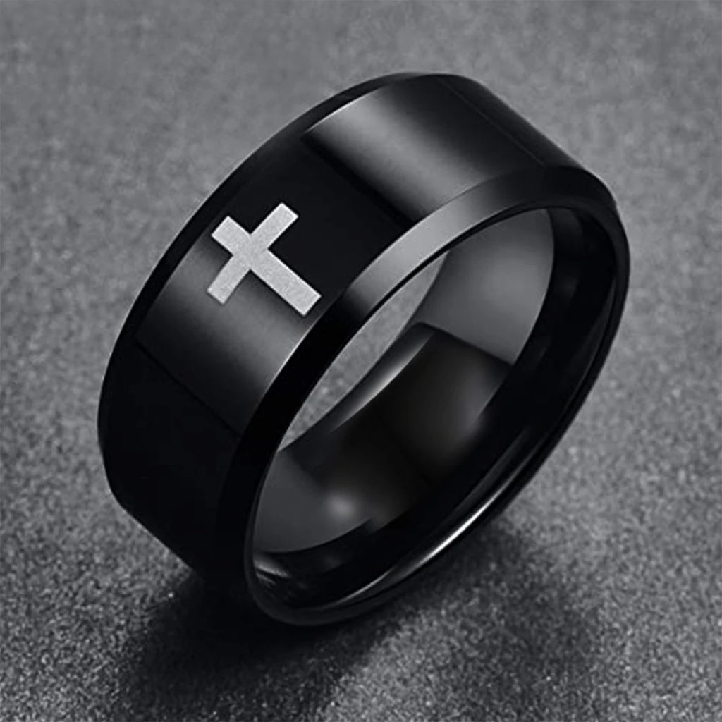Garanta agora o Anel Cruz Guerreiro Urbano — Aço Inoxidável Preto 8mm, e leve no seu visual a força de quem acredita e não recua.